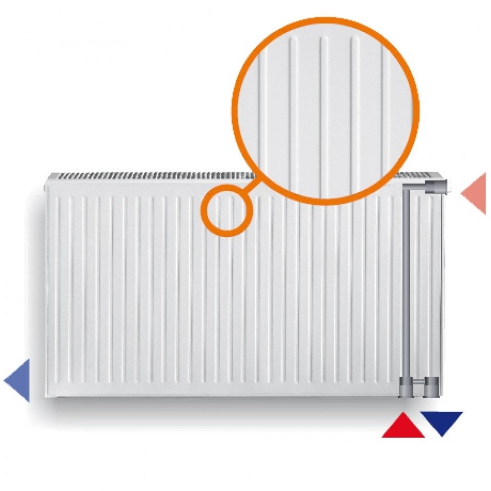 Pajungimas – iš apačios arba iš šono (radiatoriai tvirtinami universaliais laikikliais ir gali būti apsukami, todėl paprasta montuoti toje pusėje, kurioje yra vandens įvadas)