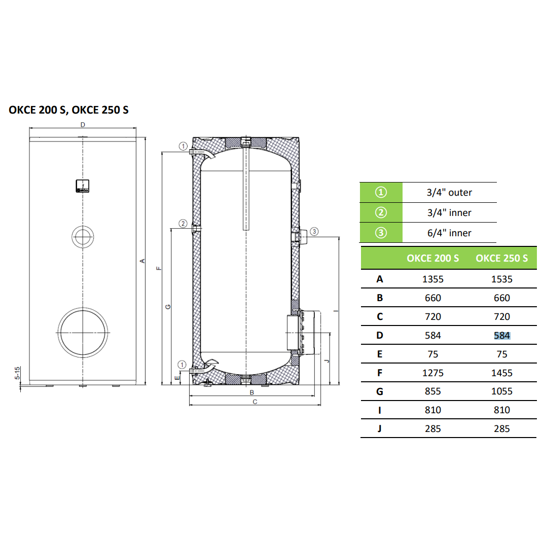 Vandens šildytuvo Dražice OKCE 200 S techniniai duomenys: